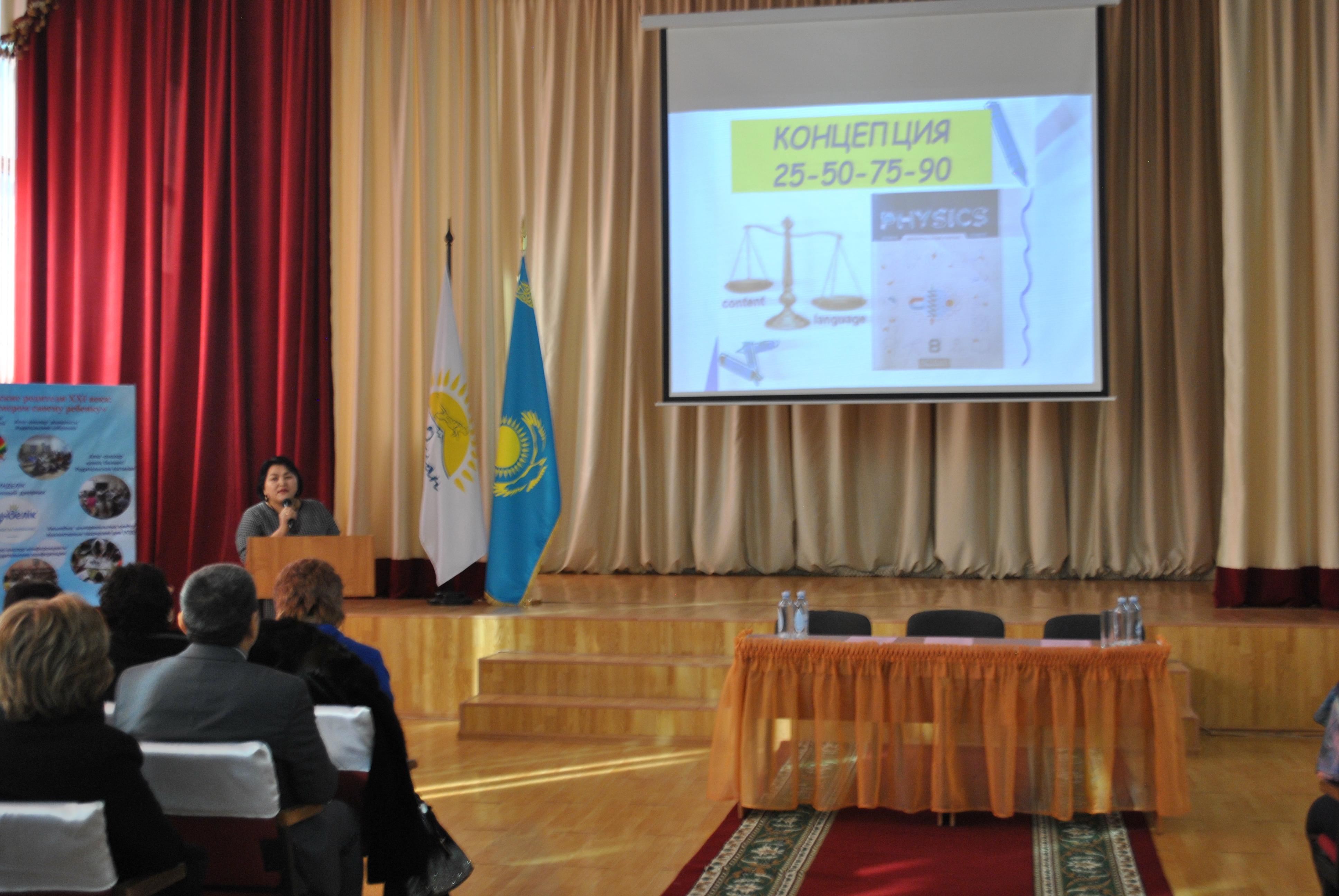 Не секрет, что ценность школы определяется учительскими кадрами. Не все учителя смогли сразу принять новшество – преподавание предметов на английском. Кто-то боялся, что не сможет вести урок на иностранном языке. Кто-то опасался, что и ученики не смогут понять, тем более что предметы физика, химия, биология, информатика сами по себе сложные, и хорошо бы изучить их на родном языке. И главное, что нужно было - это настроить учителей на участие в новом проекте.