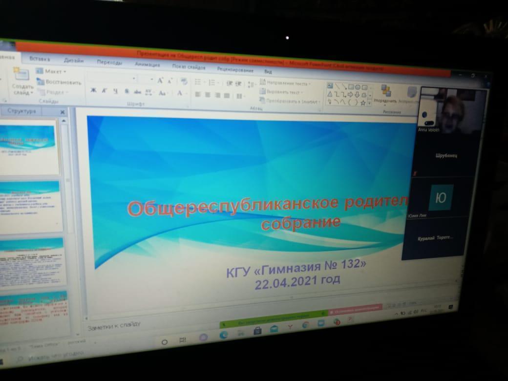 22.05.2021 года согласно письма МОН в КГУ №Гимназия № 132» для родителей учащихся 1-11-х классов проведено республиканское родительское собрание.