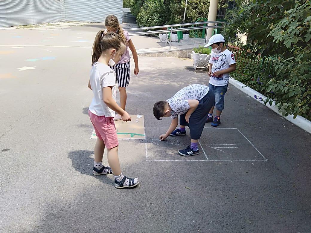 «№132 гимназия» КММ жазғы мектебінде балалар өздерінің эмоциялары мен батылдықтарын көрсете алатын асфальтта сурет салу байқауы өтті.