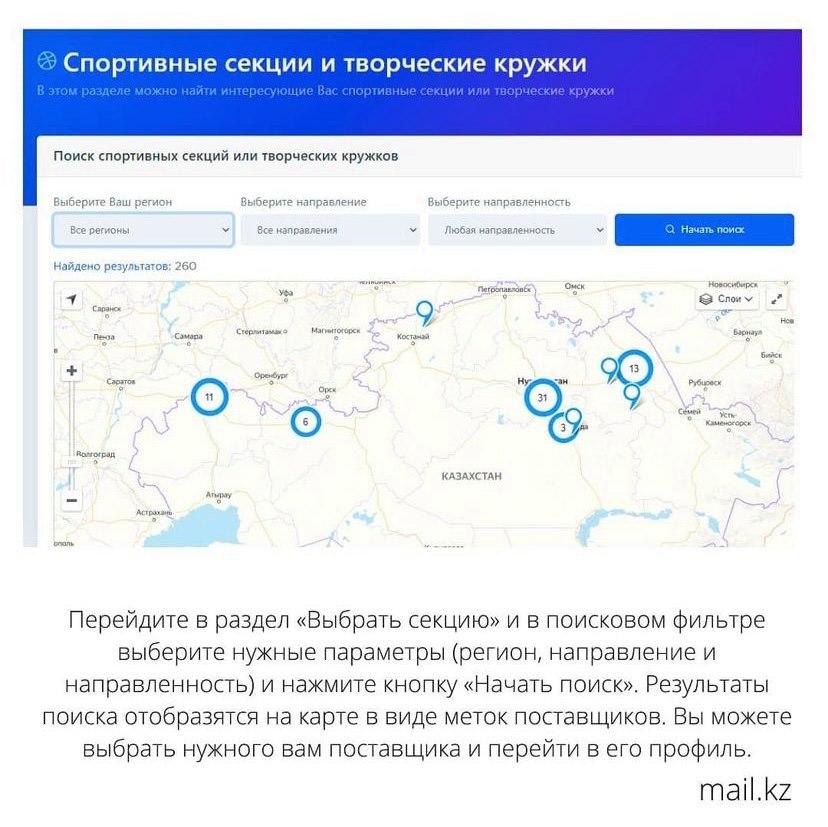 Мемлекеттік спорт пен шығармашылық тапсырыстарды жан басына нормативтік қаржыландыру платформасы өз жұмысын бастады. Енді сіз балаңызды тегін үйірмелерге тіркей аласыз.