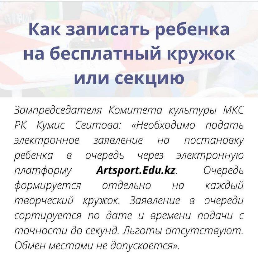 Мемлекеттік спорт пен шығармашылық тапсырыстарды жан басына нормативтік қаржыландыру платформасы өз жұмысын бастады. Енді сіз балаңызды тегін үйірмелерге тіркей аласыз.