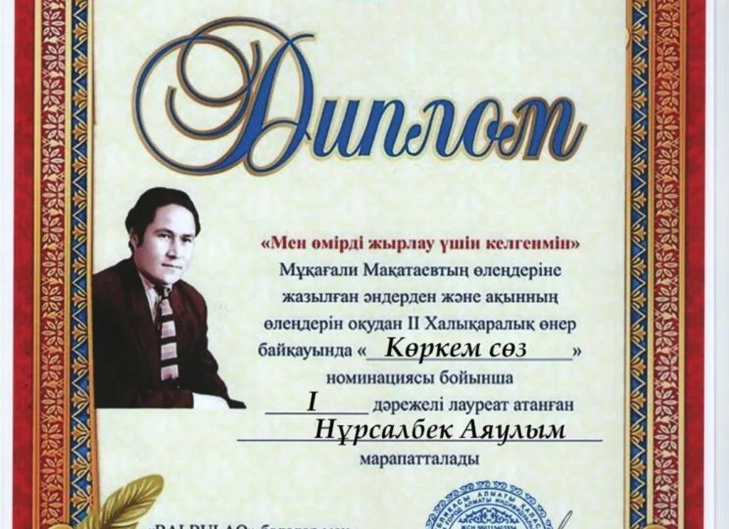 "Мен өмірді жырлау үшін келгенмін" Мұқағали Мақатаевтың өлеңдеріне жазылған әндерден және ақынның өлеңдерін оқудан ІІ Халықаралық өнер байқауына қатысып, өз өнерімен дараланған ерекше талант иесі "Көркем сөз " номинациясы бойынша Бас жүлде иеленген Қанатов Димаш, жетекшісі Калитова Б. Сонымен қатар "Көркем сөз " номинациясы бойынша І дәрежелі лауреат атанған Досмағанбетұлы Рамазан жетекшісі: Калитова Б. және аталған номинация бойынша І дәрежелі лауреат атанған Нұрсалбек Аяулым, жетекшісі: Бердалиева Л жеңістеріңізбен құттықтаймыз.Канатов Димаш, принявший участие во II Международном конкурсе искусств «Мен өмірді жырлау үшін келгенмін» и прочитавший стихи Мукагали Макатаева, получил Гран-при в номинации «Көркем сөз». Также Рамазан Досмаганбетович, лауреат I степени в номинации «Художественное слово» Научный руководитель: Калитова Б. и Нурсалбек Аяулым, лауреат I степени в этой номинации, руководитель: Бердалиева Л. Поздравляем с победой.