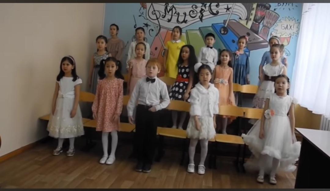 «Тоника» музыкалық студиясының кіші хоры «Әже туралы әнді» орындайды Хор жетекшісі Данилова И.А.