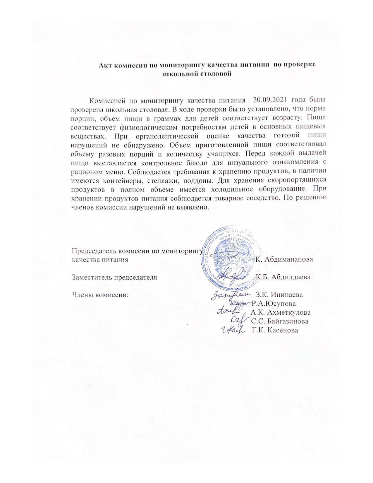 20 қыркүйек 2021 0 1 2 3 4 5 Акт комиссии по мониторингу качества питания по проверке школьной столовой Осы беттің QR-коды:QR-код этой страницы: