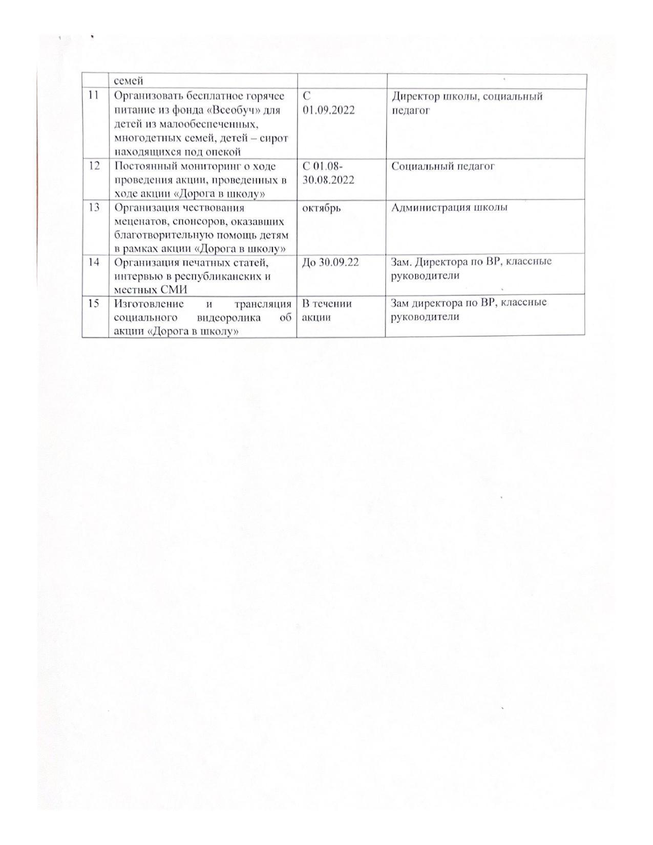 План проведения мероприятий общереспубликанской Акции «ДОРОГА В ШКОЛУ» под девизом «Дорога в школу - Добро без границ» с 1 августа по 30 сентября 2022 года