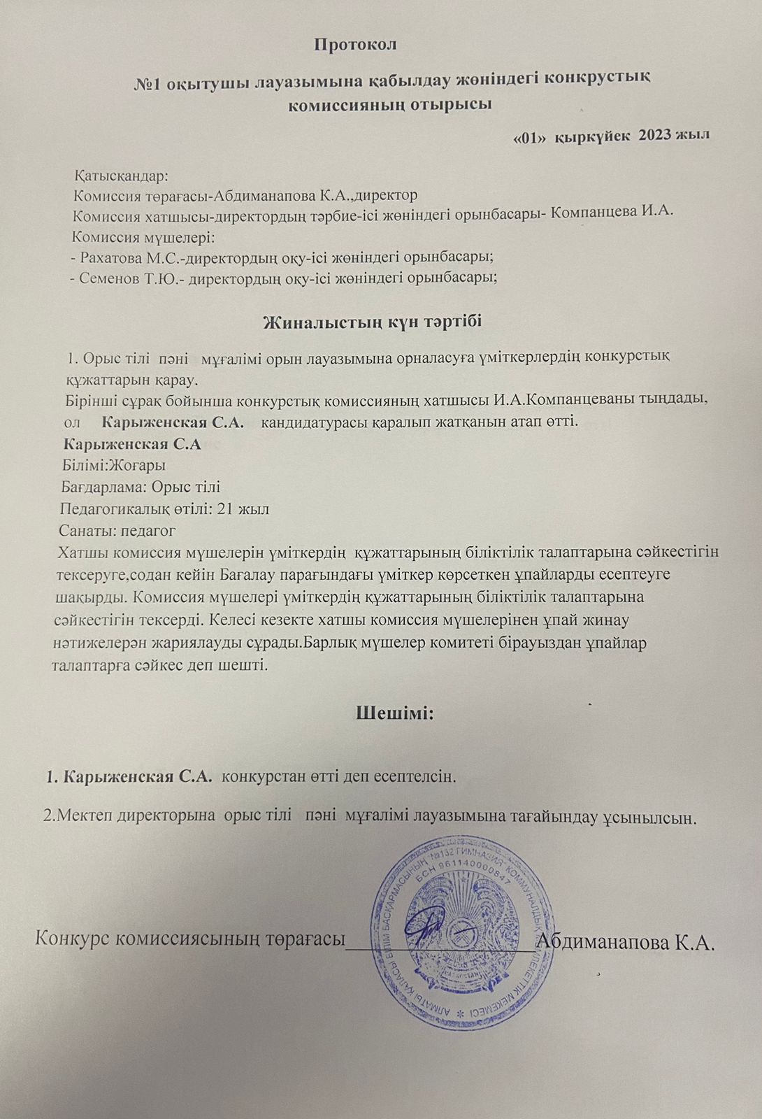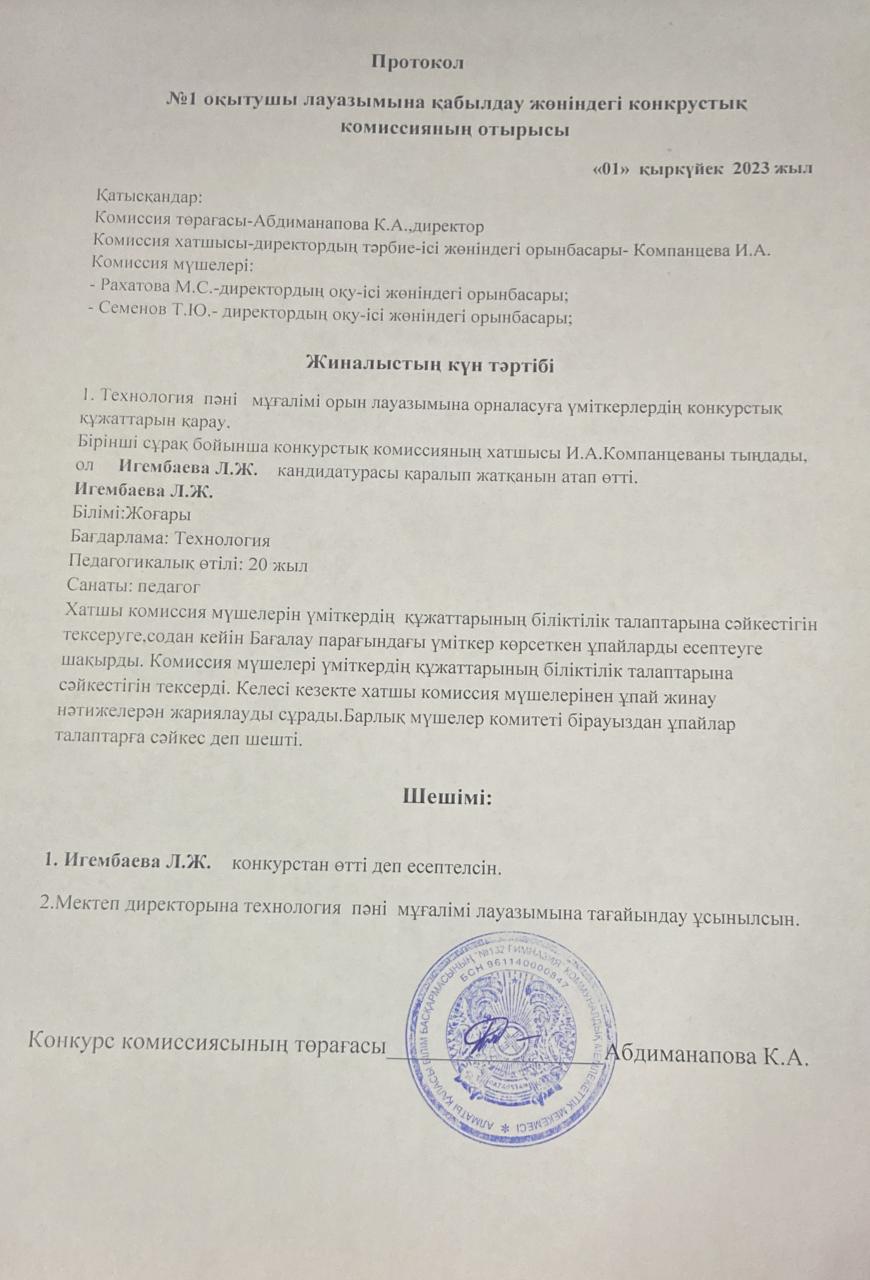 01 қыркүйек 2022 0 1 2 3 4 5 №1 оқытушы лауазымына қабылдау жөніндегі конкрустық комиссияның отырысы жөніндегі хаттама Осы беттің QR-коды:QR-код этой страницы:
