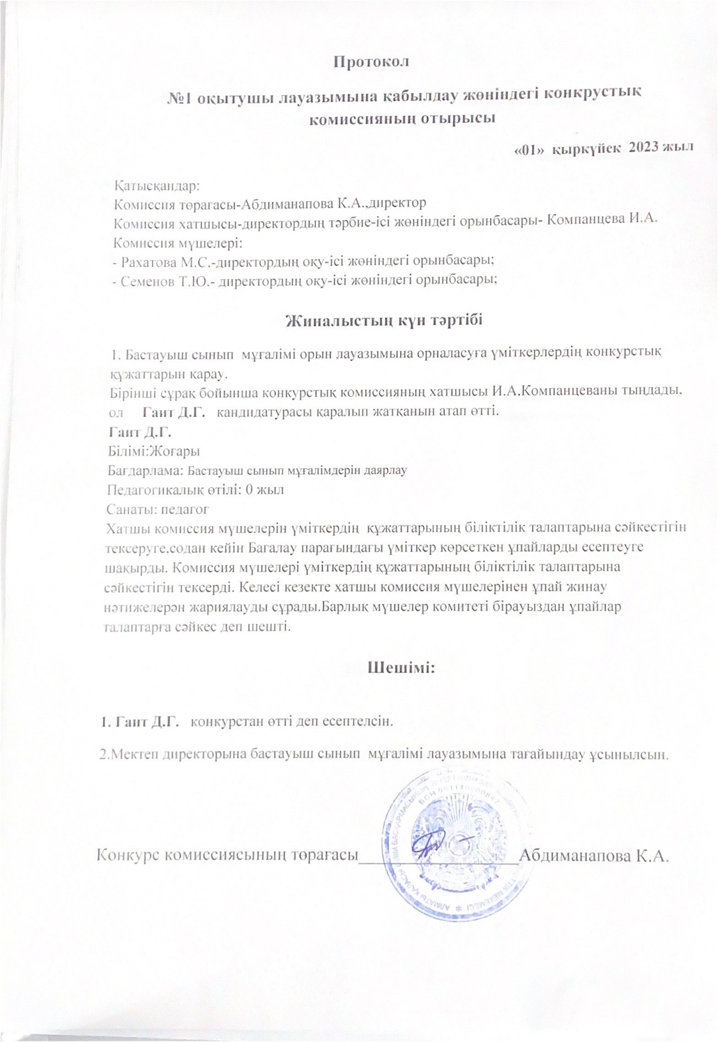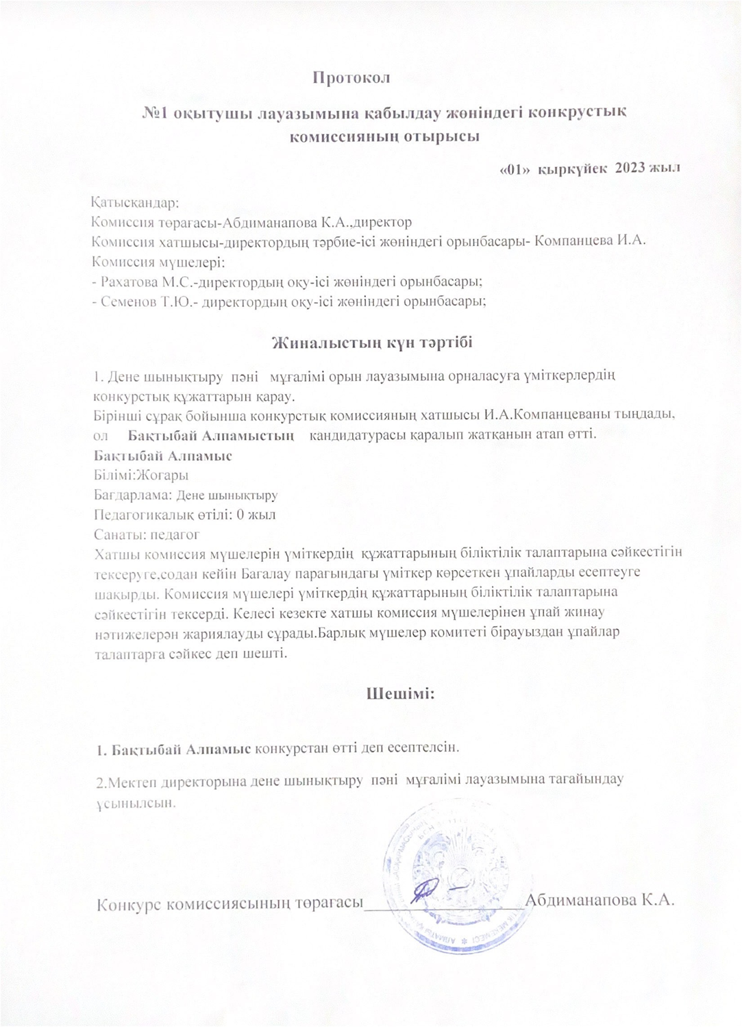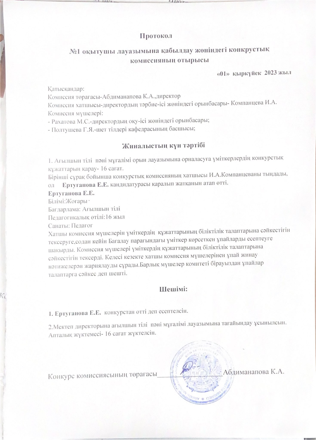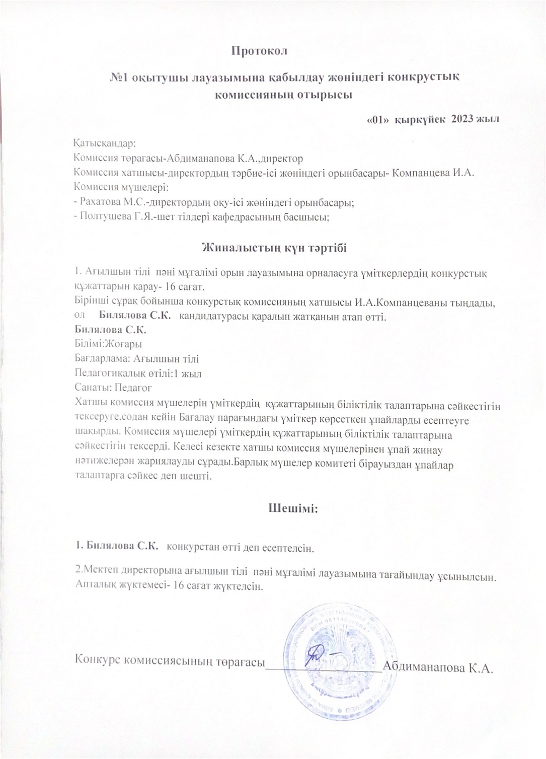 01 қыркүйек 2023 0 1 2 3 4 5 №1 оқытушы лауазымына қабылдау жөніндегі конкрустық комиссияның отырысы жөніндегі хаттама Осы беттің QR-коды:QR-код этой страницы: