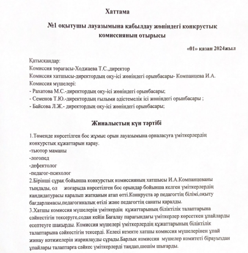 01 қазан 2024 0 1 2 3 4 5 №1 Хаттама оқытушы лауазымына қабылдау жөніндегі конкурстық комиссия отырысы Осы беттің QR-коды:QR-код этой страницы: