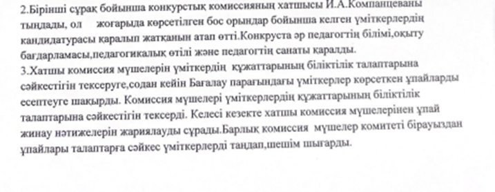 02 қыркүйек 2024 0 1 2 3 4 5 №1 Хаттама оқытушы лауазымына қабылдау жөніндегі конкурстық комиссия отырысы Осы беттің QR-коды:QR-код этой страницы: