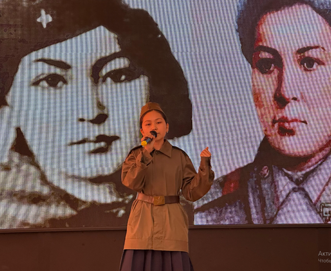 6 «Ә», 7 «Ә» және 10 «В» сыныптарының оқушылары шынайы ықыласпен, құрметпен концерттік бағдарлама дайындап, көрермендерге ұсынды. Соғыс туралы өлеңдер оқылып, жүректерге терең әсер еткен соғыс жылдарындағы әндер шырқалды. Әрбір қойылым – ардагерлерге деген ризашылықтың, мақтаныштың және рухани беріктіктің көрінісі болды.