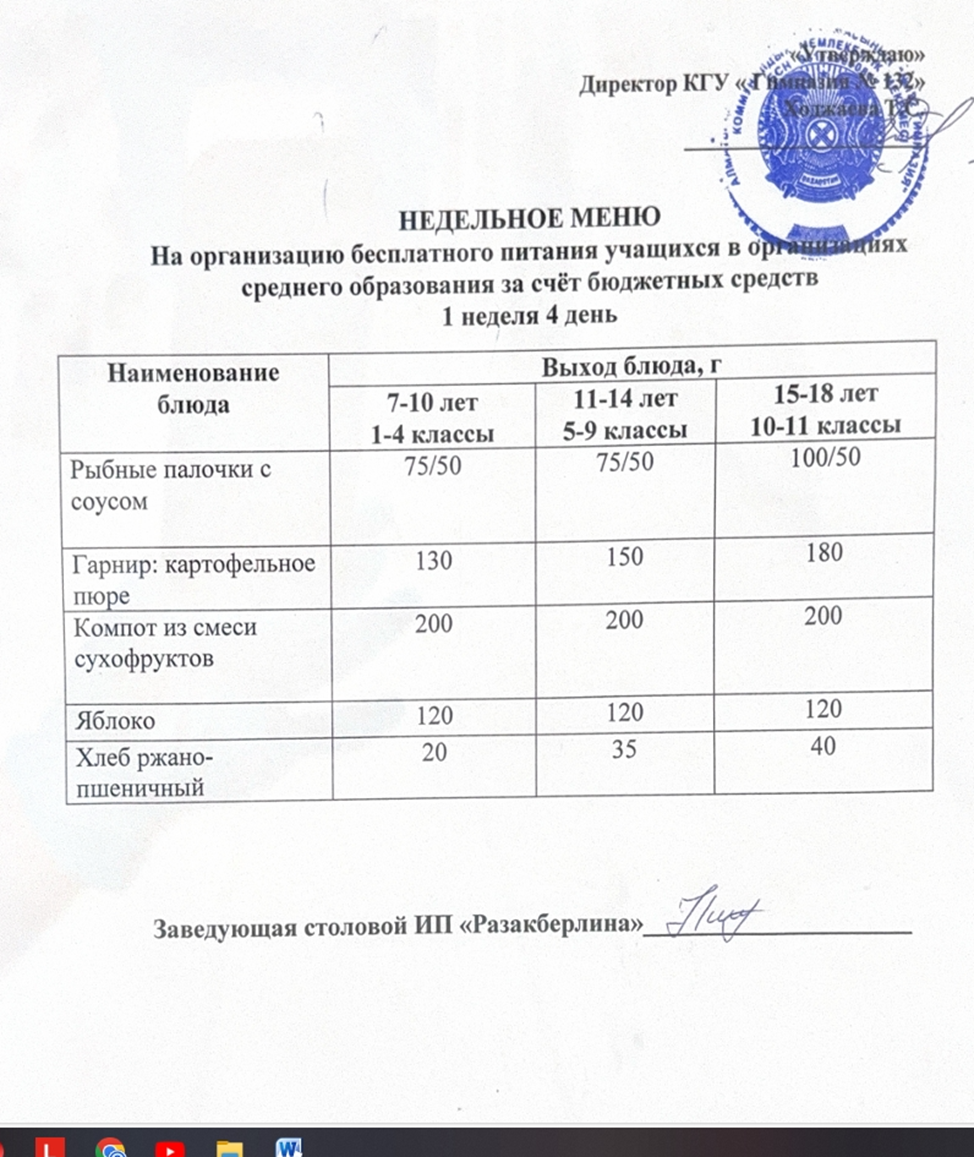 » Ас мәзірі 1 апта 4 күн