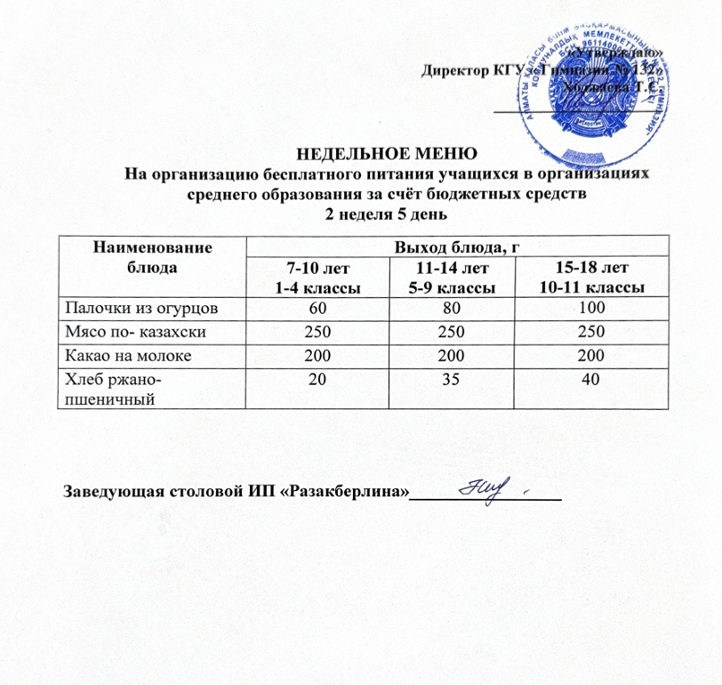» Ас мәзірі 2 апта 5 күн