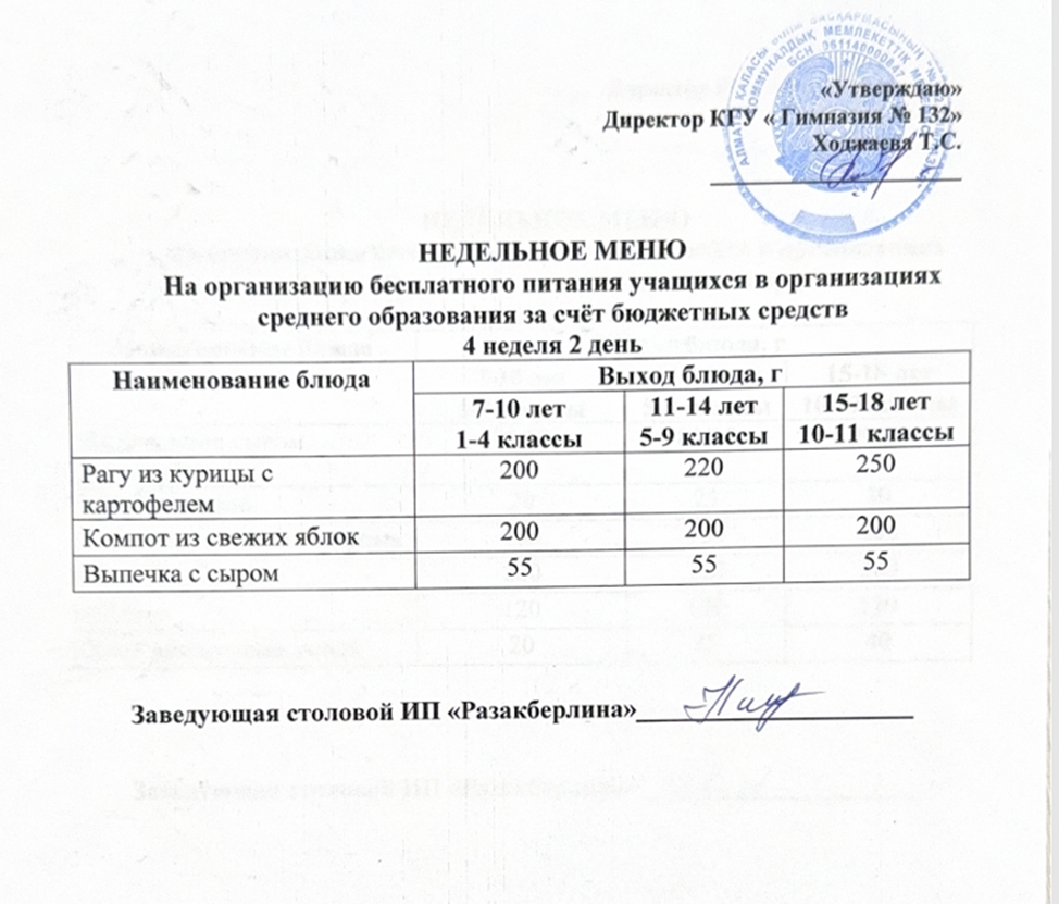 » Ас мәзірі 4 апта 2 күн