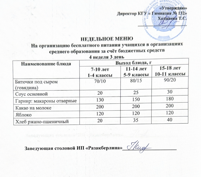 » Ас мәзірі 4 апта 3 күн